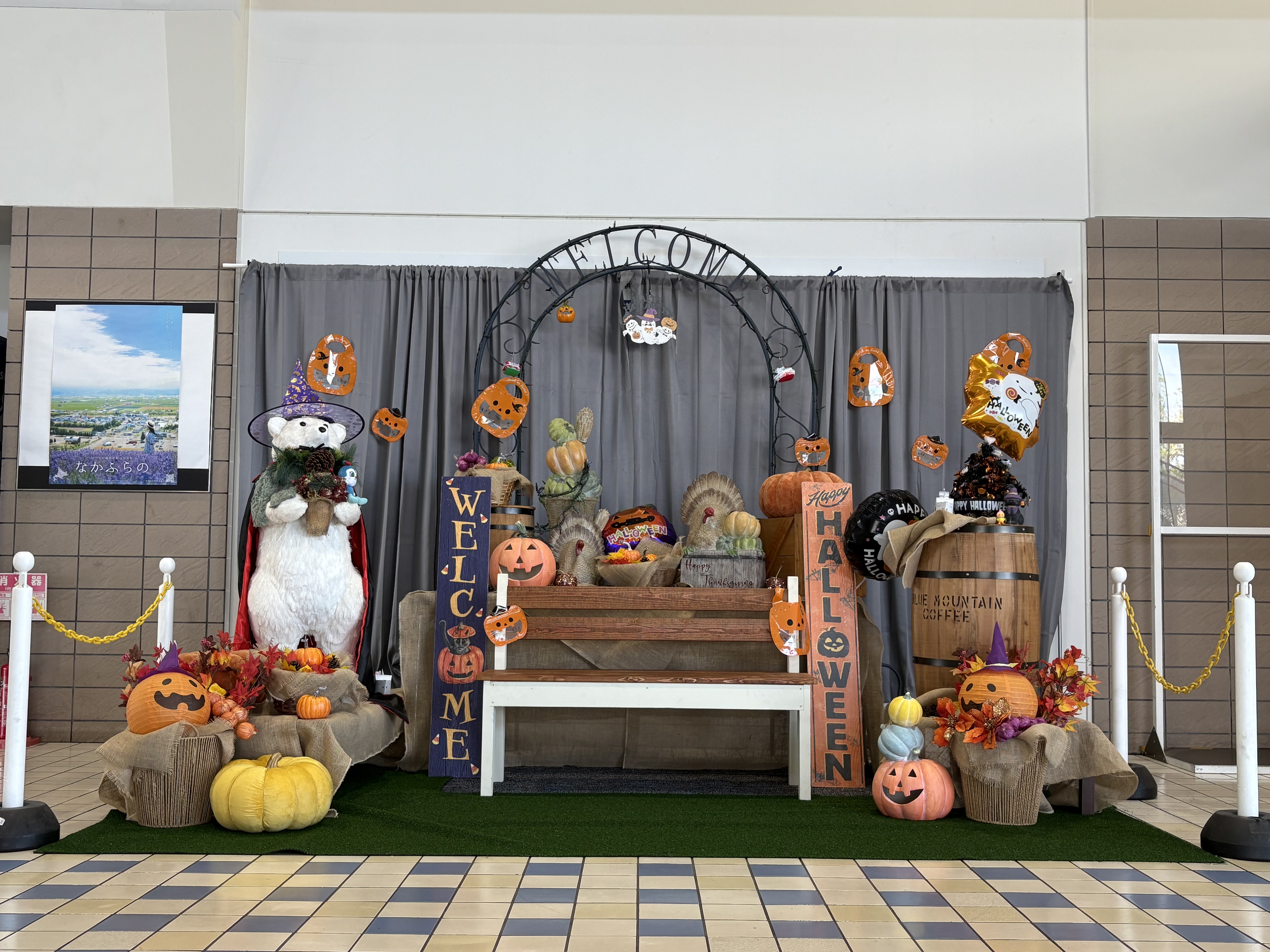 この度、大洗港フェリーターミナルビル1Fロビーにハロウィン飾りを設置いたしました。